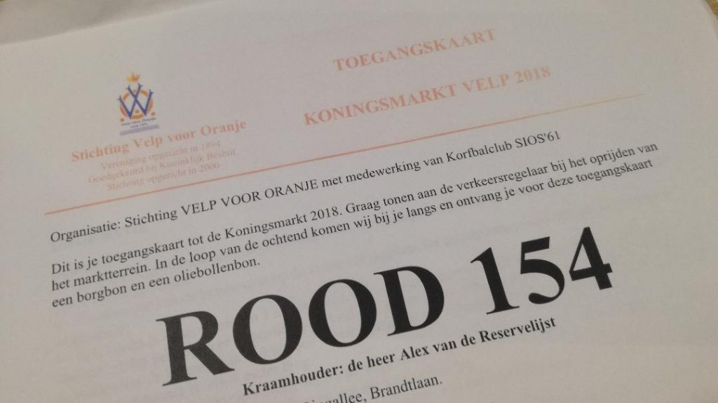 ‘Iedereen moet z’n spulletjes nog even opslaan’, meldt Johan Thijsse, marktmeester van de Koningsmarkt in Velp. Oranjevereniging Velp voor Oranje heeft op advies van de landelijke Bond van Oranjeverenigingen besloten om op Koningsdag geen festiviteiten te organiseren. Dus ook de ‘grootste particuliere markt van het Oosten’ gaat dit jaar niet door.